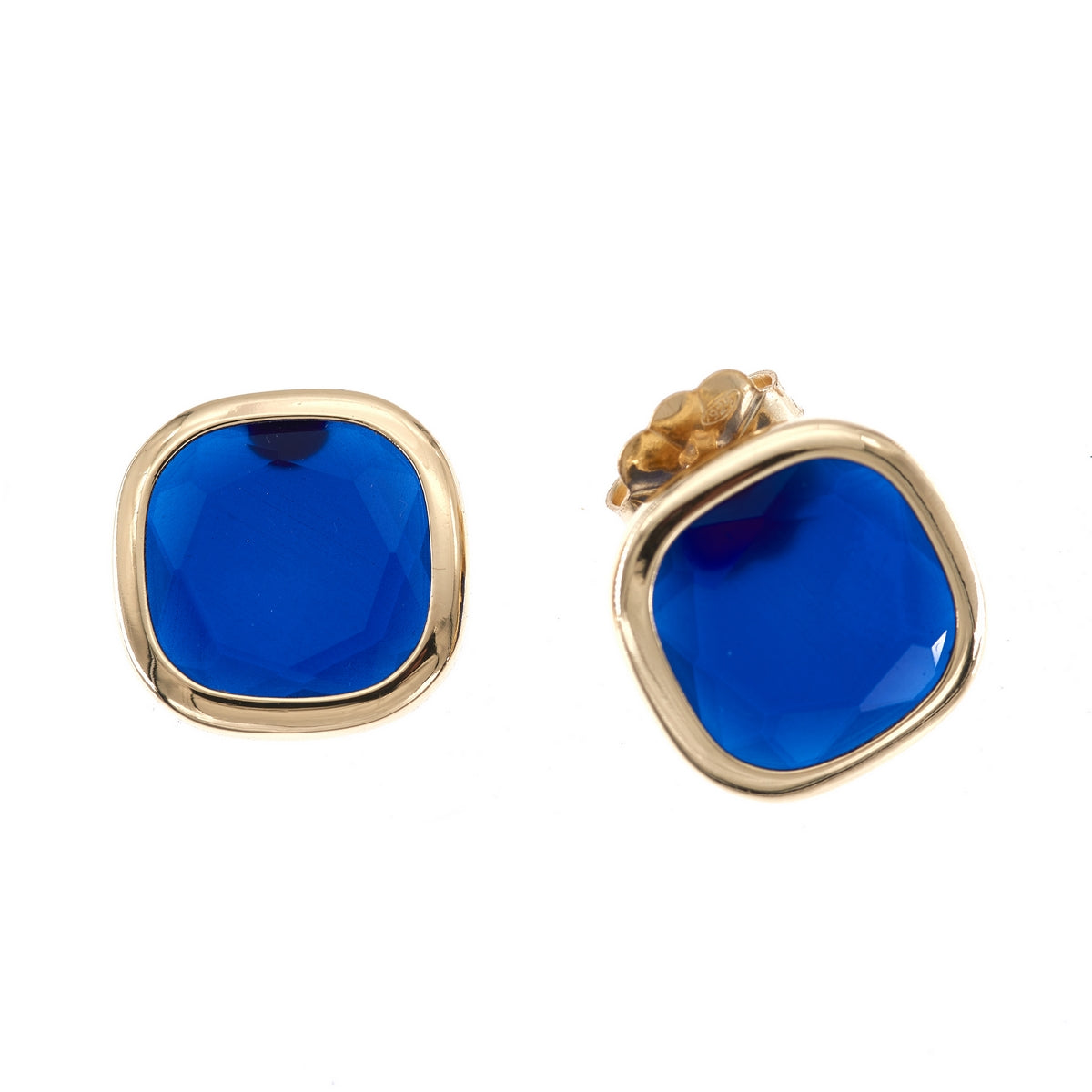 Aquaforte Caramelle Reverse earrings with blue satin-finish faceted Venitian glass